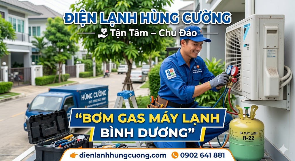 Việc máy lạnh bỗng nhiên hoạt động kém hiệu quả, gió thổi ra không còn hơi lạnh sâu giữa cái nắng gay gắt của Thủ Dầu Một hay Thuận An là nỗi ám ảnh của nhiều gia đình. Đa số trường hợp này đều bắt nguồn từ vấn đề môi chất lạnh (gas). Trong bài viết này, các chuyên gia từ Điện Lạnh Hùng Cường sẽ cung cấp cho bạn cái nhìn toàn diện nhất về dịch vụ bơm gas máy lạnh Bình Dương, từ cách tự kiểm tra đến bảng giá chi tiết.
