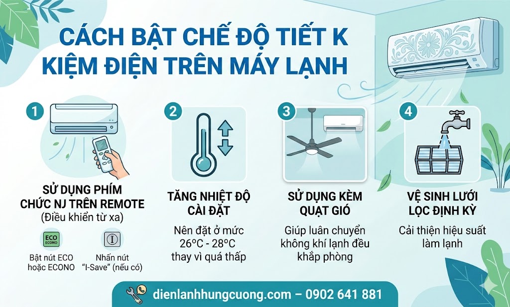 Cách Bật Chế Độ Tiết Kiệm Điện Trên Máy Lạnh: Bí Quyết Từ Chuyên Gia Điện Lạnh Hùng Cường