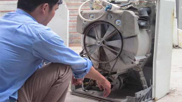 Kỹ thuật viên tiến hành kiểm tra toàn bộ máy giặt, từ cơ khí, điện, board mạch đến linh kiện quan trọng: