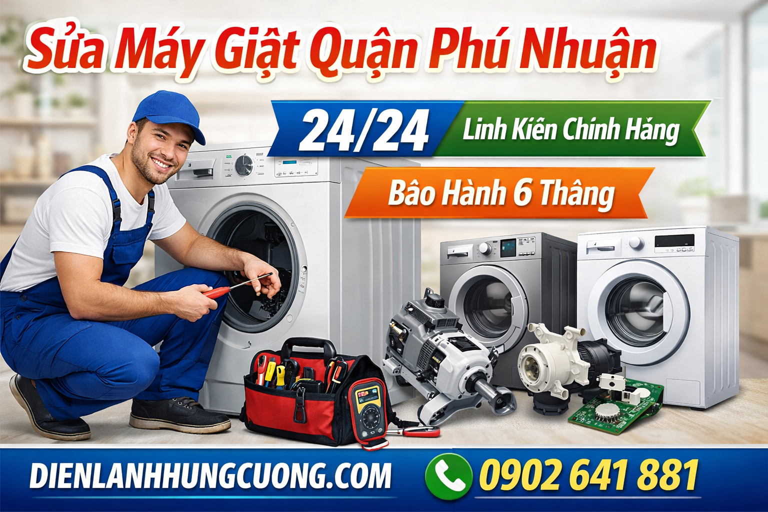 Dịch vụ sửa chữa máy giặt quận Phú Nhuận của Điện Lạnh Hùng Cường là địa chỉ sửa chữa máy giặt uy tín số 1 tại TPHCM. Tại Điện Lạnh Hùng Cường chúng tôi có thể sửa chữa tất cả các lỗi hỏng hóc trên máy giặt giúp khắc phục các sự cố một cách nhanh chóng, chính xác và đáng tin cậy nhất.