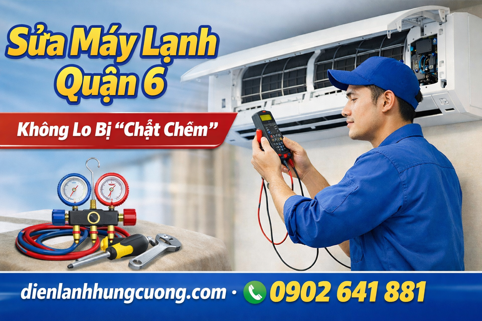 Máy lạnh ở quận 6 hay gặp mấy lỗi rất quen: đang chạy thì không lạnh, chảy nước xuống sàn, bật lên nghe ồn mà phòng vẫn nóng. Nhiều nhà gọi thợ tới sửa rồi nhưng chỉ được thời gian ngắn là hư lại, vừa tốn tiền vừa mệt. Tụi mình làm sửa máy lạnh lâu năm ở khu vực này nên hiểu rất rõ: quan trọng nhất không phải sửa nhanh, mà là sửa đúng lỗi ngay từ đầu.