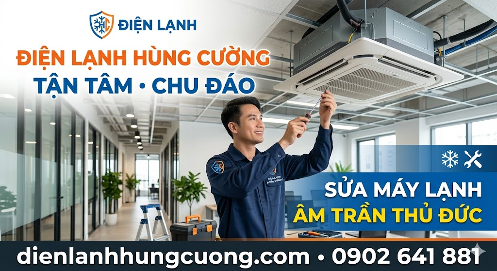 Máy lạnh âm trần (Cassette) là biểu tượng của sự sang trọng và tiện nghi trong các không gian hiện đại như văn phòng, biệt thự, hay nhà hàng tại Thủ Đức. Tuy nhiên, sự phức tạp trong cấu tạo cũng khiến việc hư hỏng trở thành một "cơn ác mộng" thực sự. Khi máy gặp sự cố, bạn không chỉ đối mặt với cái nóng gay gắt mà còn lo lắng về việc tháo dỡ trần thạch cao hay chi phí sửa chữa đắt đỏ.