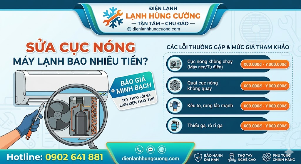 Bài viết này, Điện Lạnh Hùng Cường sẽ cùng bạn bóc tách mọi góc khuất về cục nóng máy lạnh, từ nguyên nhân, cách tự kiểm tra cho đến bảng giá chi tiết để bạn không bao giờ phải lo lắng về việc bị "chặt chém" khi gọi thợ.