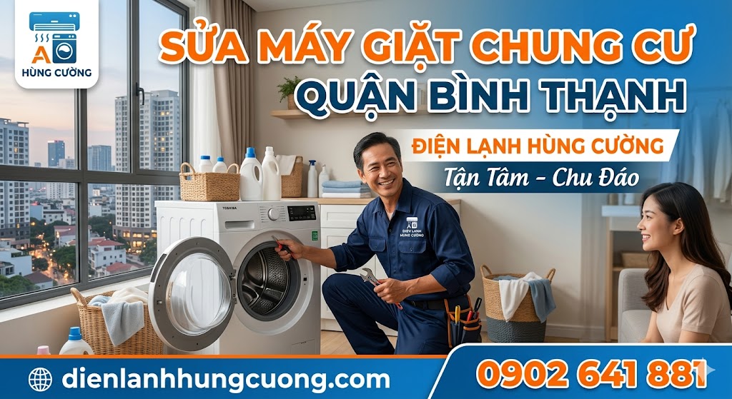 Hiểu được những trăn trở đó, Điện lạnh Hùng Cường mang đến giải pháp dịch vụ sửa máy giặt chuyên nghiệp, tận tâm ngay tại căn hộ của bạn. Trong bài viết này, chúng tôi sẽ giúp bạn "bắt bệnh" nhanh các lỗi phổ biến, hướng dẫn cách kiểm tra tại nhà và cung cấp bảng giá sửa máy giặt Bình Thạnh minh bạch nhất năm 2026. Đừng để một sự cố nhỏ làm gián đoạn cuộc sống tiện nghi – hãy cùng khám phá bí quyết để giữ cho máy giặt luôn bền bỉ và sạch khuẩn với dịch vụ vệ sinh máy giặt Bình Thạnh chuẩn chuyên gia ngay sau đây!