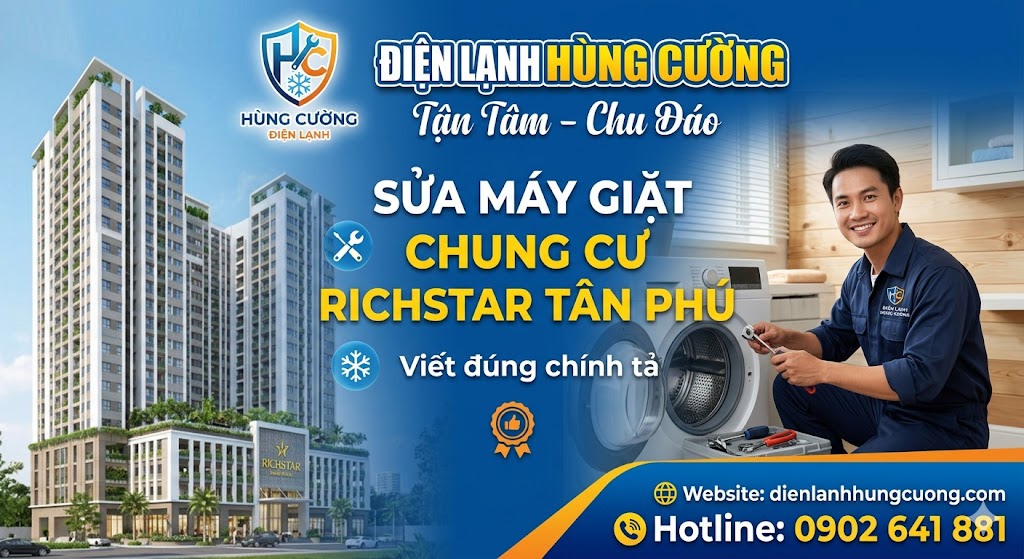 Việc sở hữu một chiếc máy giặt hoạt động ổn định là điều cực kỳ quan trọng đối với cư dân tại các khu căn hộ cao cấp như Richstar Tân Phú. Với nhịp sống hiện đại bận rộn, chỉ cần máy giặt gặp sự cố một ngày, việc tồn đọng quần áo sẽ gây ra không ít phiền toái. Hiểu được điều đó, Điện lạnh Hùng Cường cung cấp giải pháp sửa máy giặt Tân Phú chuyên nghiệp, tận tâm, giúp bạn giải quyết mọi hỏng hóc ngay tại căn hộ của mình.
