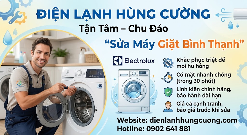 Máy giặt Electrolux vốn nổi tiếng với sự bền bỉ, công nghệ giặt tiên tiến và thiết kế sang trọng. Tuy nhiên, sau một thời gian dài vận hành, ngay cả những dòng máy cao cấp nhất cũng không tránh khỏi các sự cố hỏng hóc. Nếu bạn đang cư ngụ tại khu vực Bình Thạnh và chiếc máy giặt bỗng nhiên "đình công", việc tìm kiếm một đơn vị sửa máy giặt Electrolux uy tín là ưu tiên hàng đầu.