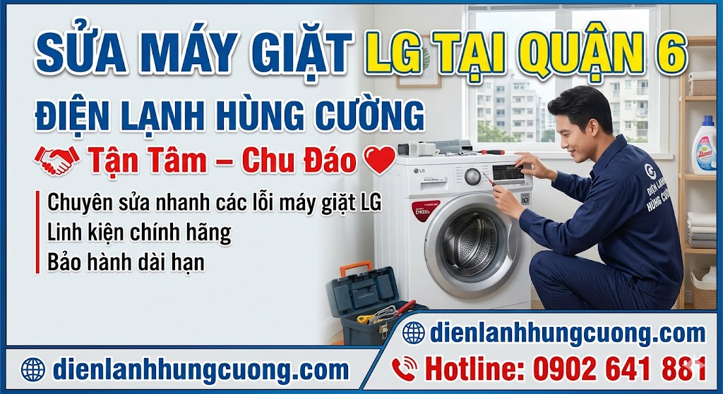 Giữa cái nắng oi ả và nhịp sống hối hả tại Quận 6, chiếc máy giặt LG dường như trở thành "người bạn" không thể thiếu trong mỗi gia đình. Tuy nhiên, bỗng một ngày "người bạn" này đổ bệnh, đình công khiến đống quần áo chất cao như núi. Bạn đang loay hoay tìm kiếm một dịch vụ sửa máy giặt Quận 6 uy tín? Bạn lo sợ gặp phải thợ "dỏm" hoặc bị hét giá?