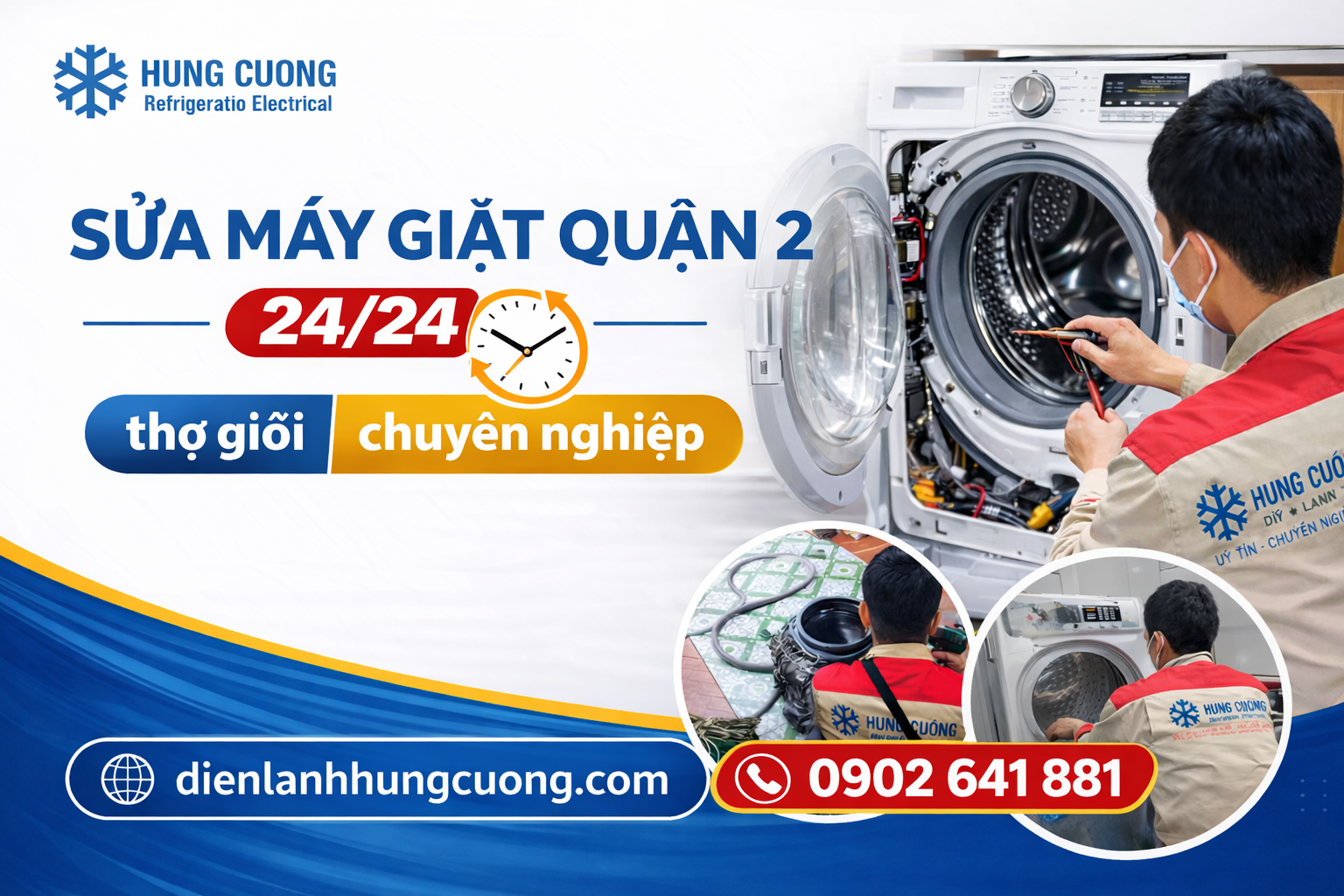 Hãy liên hệ với Điện Lạnh Hùng Cường khi bạn cần tìm dịch vụ sửa chữa máy giặt tại nhà quận 2. Ngoài dịch vụ sửa chữa máy lạnh, Điện Lạnh Hùng Cường còn cung cấp dịch vụ sửa máy nước nóng, tủ lạnh, lò vi sóng và tháo lắp máy lạnh.