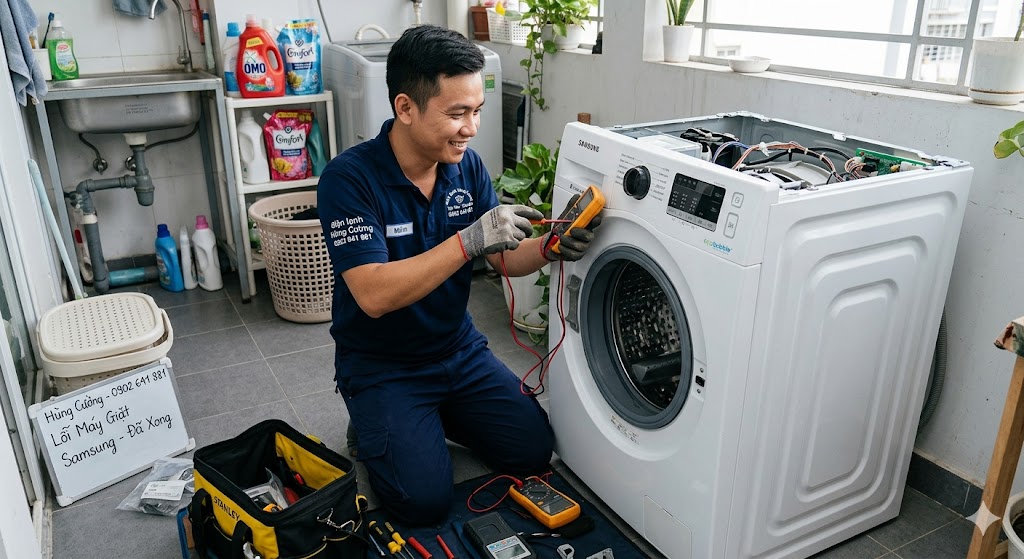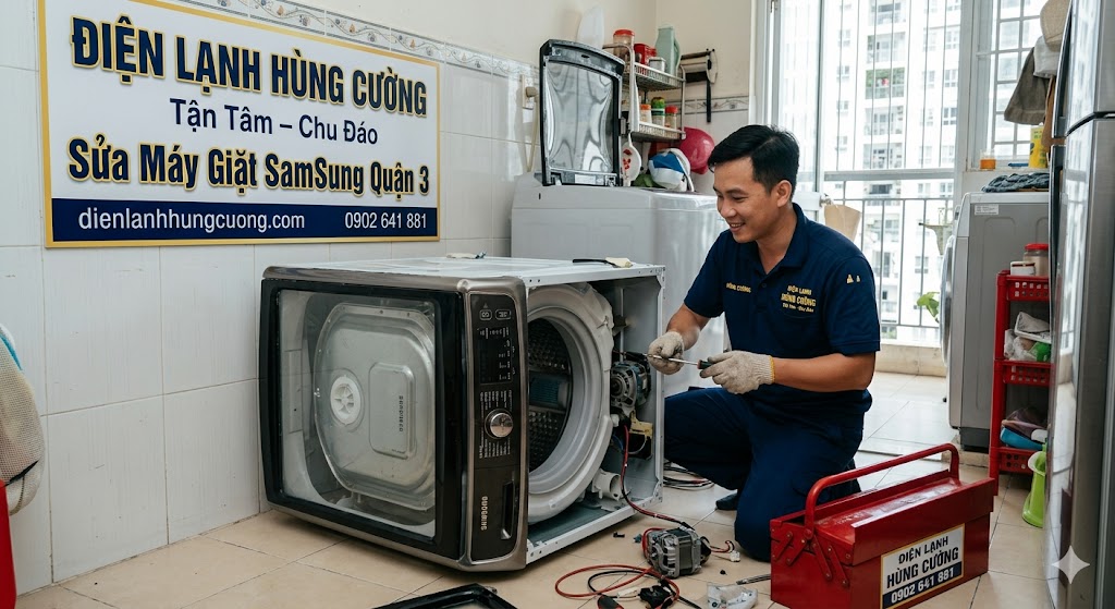 Trong nhịp sống hối hả tại trung tâm Quận 3, chiếc máy giặt Samsung không chỉ là thiết bị gia dụng mà còn là "trợ thủ" đắc lực giải phóng sức lao động. Tuy nhiên, sau thời gian dài vận hành, việc gặp sự cố là điều khó tránh khỏi. Bạn đang loay hoay với đống quần áo chất đống? Bạn cần tìm dịch vụ sửa máy giặt Quận 3 uy tín, có mặt ngay?