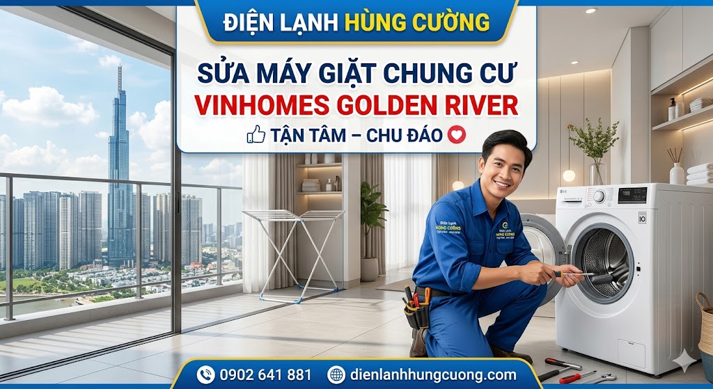 Trong không gian sống thượng lưu tại Vinhomes Golden River (Ba Son), máy giặt không chỉ là một thiết bị gia dụng mà còn là "trợ thủ" đắc lực giúp duy trì nhịp sống hiện đại. Tuy nhiên, việc máy giặt gặp sự cố giữa chừng không chỉ gây phiền toái mà còn ảnh hưởng đến chất lượng trang phục đắt tiền của cư dân. Để đáp ứng tiêu chuẩn khắt khe tại đây, dịch vụ sửa máy giặt Quận 1 của Điện Lạnh Hùng Cường cam kết mang đến giải pháp chuyên nghiệp, nhanh chóng và minh bạch nhất.