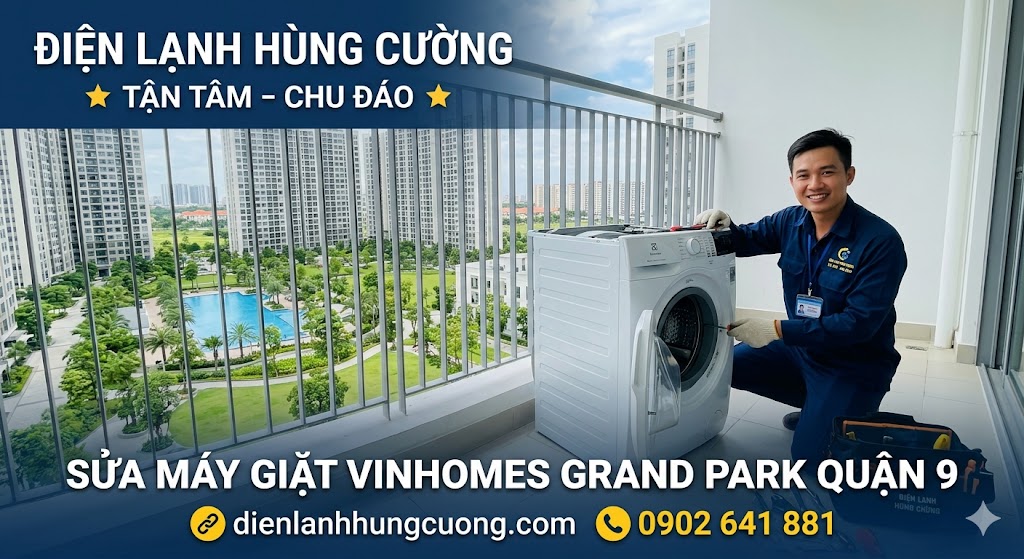 Lời kết: Dịch vụ sửa máy giặt Vinhomes Grand Park Quận 9 của Điện lạnh Hùng Cường luôn đặt chữ TÂM và chữ TÍN lên hàng đầu. Đừng để những hư hỏng nhỏ làm gián đoạn cuộc sống tiện nghi của bạn. Hãy liên hệ ngay với chúng tôi để được phục vụ tốt nhất!