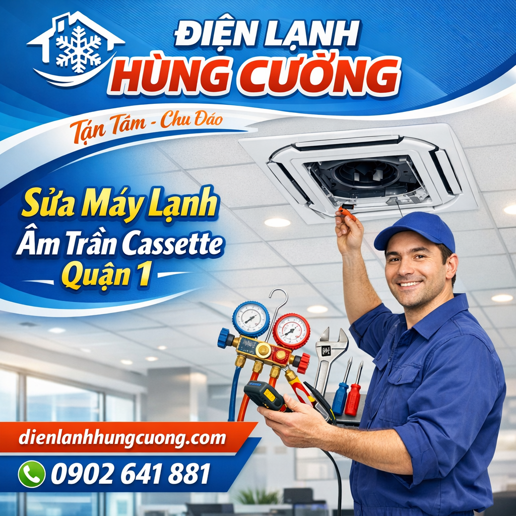 Trong phân khúc điện lạnh dân dụng và công nghiệp, máy lạnh âm trần Cassette luôn là sự lựa chọn hàng đầu cho các không gian sang trọng tại Quận 1 như văn phòng cao ốc, nhà hàng tiệc cưới hay các quán cafe boutique. Tuy nhiên, đi kèm với vẻ thẩm mỹ là một hệ thống kỹ thuật phức tạp mà không phải thợ điện lạnh nào cũng có thể xử lý tốt. Khi hệ thống này gặp sự cố, việc tìm kiếm một đơn vị sửa máy lạnh âm trần uy tín tại khu vực trung tâm trở thành ưu tiên hàng đầu của nhiều chủ doanh nghiệp.