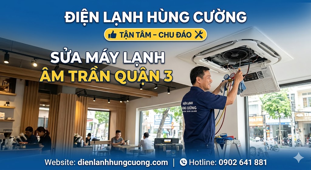 Tại trung tâm sầm uất như Quận 3, hệ thống máy lạnh âm trần (Cassette) không chỉ là thiết bị làm mát mà còn là một phần thẩm mỹ của văn phòng, nhà hàng và biệt thự. Tuy nhiên, khi hệ thống này gặp sự cố, việc tìm kiếm một đơn vị sửa máy lạnh Quận 3 có đủ trình độ chuyên môn để xử lý dòng máy phức tạp này là điều không hề dễ dàng.
