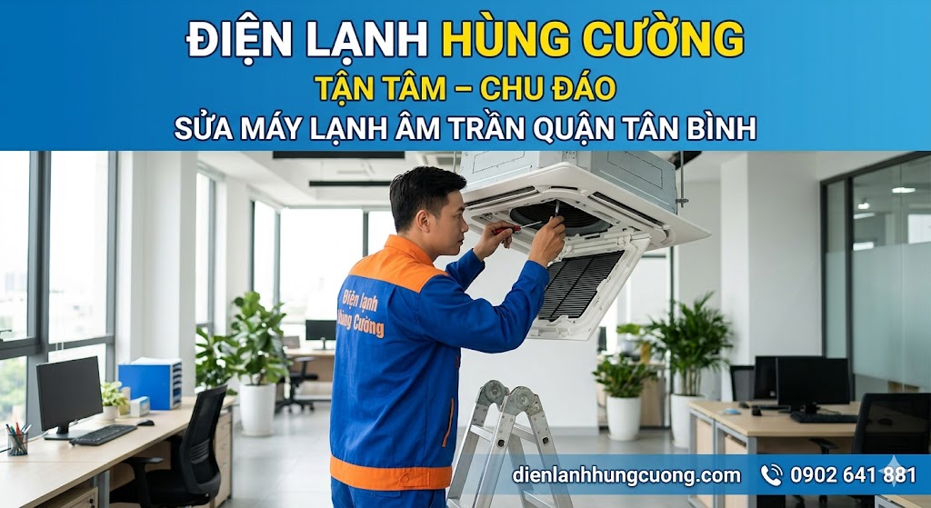 Máy lạnh âm trần (Cassette) là biểu tượng của sự sang trọng và tiện nghi cho các không gian hiện đại tại Quận Tân Bình. Tuy nhiên, khi hệ thống này gặp sự cố, việc sửa chữa không hề đơn giản như máy lạnh treo tường thông thường. Bạn đang loay hoay tìm kiếm một đơn vị sửa máy lạnh Tân Bình có đủ trình độ chuyên môn để xử lý dứt điểm các ca khó? Hãy cùng Điện lạnh Hùng Cường khám phá giải pháp toàn diện ngay trong bài viết này.