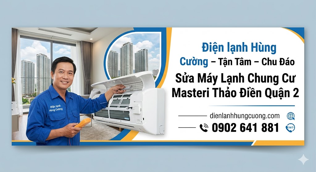 Giữa nhịp sống hiện đại tại "trái tim" Thảo Điền, việc sở hữu một căn hộ tại Masteri không chỉ là khẳng định đẳng cấp mà còn là tận hưởng không gian sống tiện nghi. Tuy nhiên, sự tiện nghi ấy sẽ ngay lập tức biến thành "cơn ác mộng" nếu hệ thống máy lạnh bất ngờ đình công giữa cái nắng oi ả của Sài Gòn. Bạn đang loay hoay tìm kiếm một địa chỉ sửa máy lạnh Quận 2 uy tín? Hay bạn băn khoăn về chi phí vệ sinh máy lạnh Quận 2 tại các tòa nhà cao tầng? Bài viết này là cẩm nang chi tiết nhất dành riêng cho cư dân Masteri Thảo Điền.