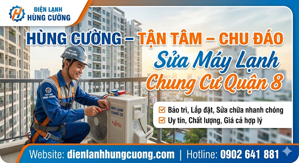 Sống tại các căn hộ cao tầng ở Quận 8 như Diamond Riverside, Topaz City hay Tara Residence, chiếc máy lạnh không chỉ là thiết bị gia dụng mà là "lá phổi" điều hòa sinh hoạt. Tuy nhiên, đặc thù không gian chung cư thường khiến máy lạnh gặp nhiều sự cố hóc búa hơn nhà phố. Bạn đang chịu đựng cái nóng hầm hập vì máy lạnh đột ngột đình công? Đừng lo lắng, bài viết này sẽ hướng dẫn bạn từ cách kiểm tra cơ bản đến việc tìm kiếm dịch vụ sửa máy lạnh Quận 8 uy tín nhất.