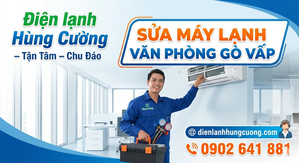 Máy lạnh văn phòng là "lá phổi" duy trì sự sống cho mọi hoạt động kinh doanh. Đừng để những hư hỏng nhỏ trở thành gánh nặng tài chính và làm giảm nhiệt huyết làm việc của nhân viên. Khi cần sửa máy lạnh tại nhà, sửa máy lạnh Gò Vấp hay tìm đơn vị tháo lắp máy lạnh Gò Vấp uy tín, hãy nhấc máy gọi ngay cho Điện lạnh Hùng Cường.