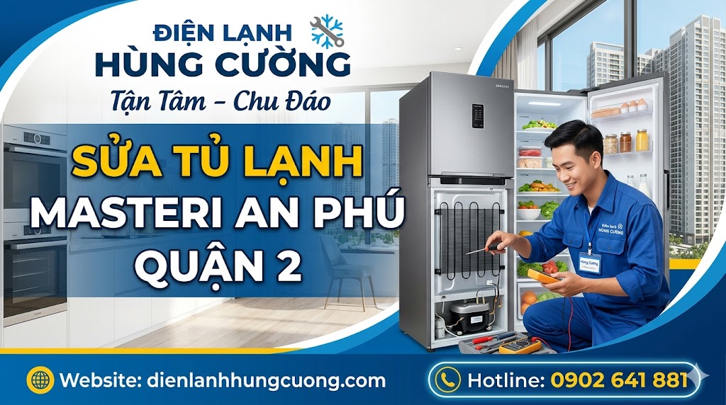 Trong nhịp sống hiện đại tại các khu dân cư cao cấp như Masteri An Phú, chiếc tủ lạnh không đơn thuần là thiết bị gia dụng mà còn là "trái tim" của gian bếp, nơi lưu trữ nguồn thực phẩm tươi ngon cho cả gia đình. Tuy nhiên, sau một thời gian vận hành liên tục 24/7, việc gặp phải các sự cố hỏng hóc là điều khó tránh khỏi. Thấu hiểu điều đó, dịch vụ sửa tủ lạnh quận 2 của Điện lạnh Hùng Cường ra đời nhằm mang đến giải pháp xử lý cấp tốc, chuyên nghiệp ngay tại căn hộ của bạn.
