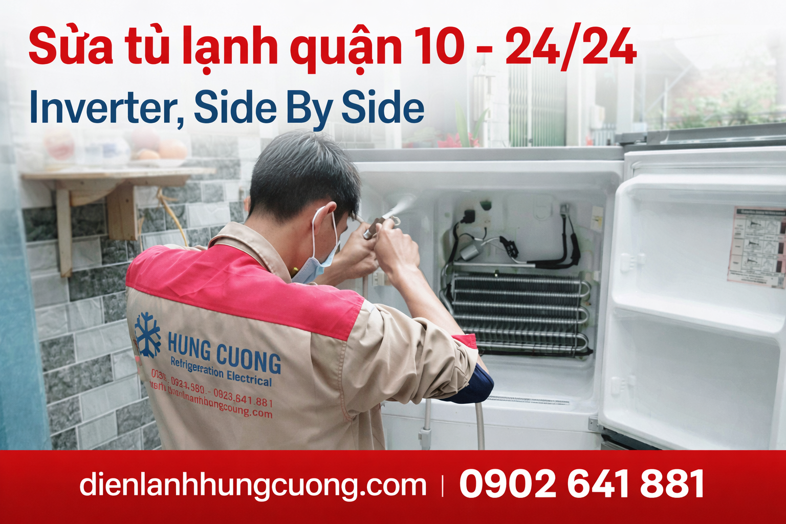 Điện Lạnh Hùng Cường luôn cam kết đem đến cho khách hàng những trải nghiệm tuyệt vời nhất. Phong cách làm việc nhanh chóng, chỉnh chu, lịch sự với kinh nghiệm chuyên môn trong việc sửa chữa các thiết bị điện lạnh nói chung cũng như tủ lạnh nói riêng tại quận 10. Hãy liên hệ ngay Hotline của chúng tôi để chúng tôi được phục vụ bạn và gia đình bạn: 028 66864560 - 0902641881.