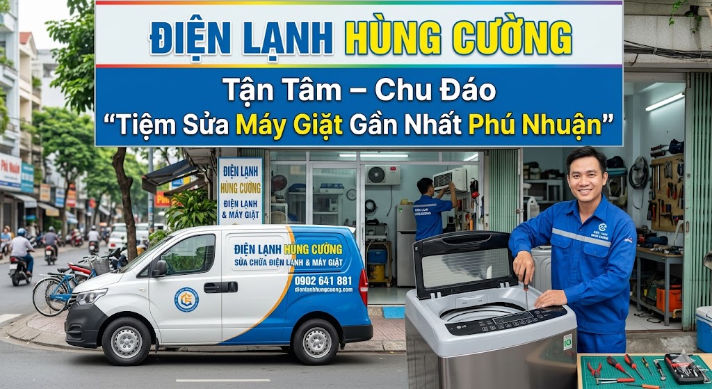 Trong nhịp sống hối hả của một quận trung tâm như Phú Nhuận, chiếc máy giặt không chỉ là thiết bị gia dụng mà còn là "người giúp việc" mẫn cán của mỗi gia đình. Một ngày đẹp trời, nếu chiếc máy bỗng nhiên đình công, đống quần áo chất cao như núi sẽ trở thành cơn ác mộng. Bạn đang cuống cuồng tìm kiếm một tiệm sửa máy giặt gần nhất Phú Nhuận? Bạn lo lắng về giá cả và chất lượng? Hãy để Điện lạnh Hùng Cường giúp bạn giải tỏa mọi nỗi lo qua bài viết chuyên sâu dưới đây.