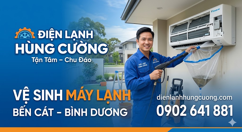 Máy lạnh sau một thời gian dài hoạt động tại khu vực công nghiệp như Bến Cát thường xuyên rơi vào tình trạng yếu lạnh, chảy nước hoặc tiêu tốn quá nhiều điện năng. Bạn đang tìm kiếm một đơn vị vệ sinh máy lạnh Bình Dương uy tín, giá cả minh bạch? Điện Lạnh Hùng Cường với hơn 10 năm kinh nghiệm chính là điểm dừng chân tin cậy của mọi gia đình và doanh nghiệp.