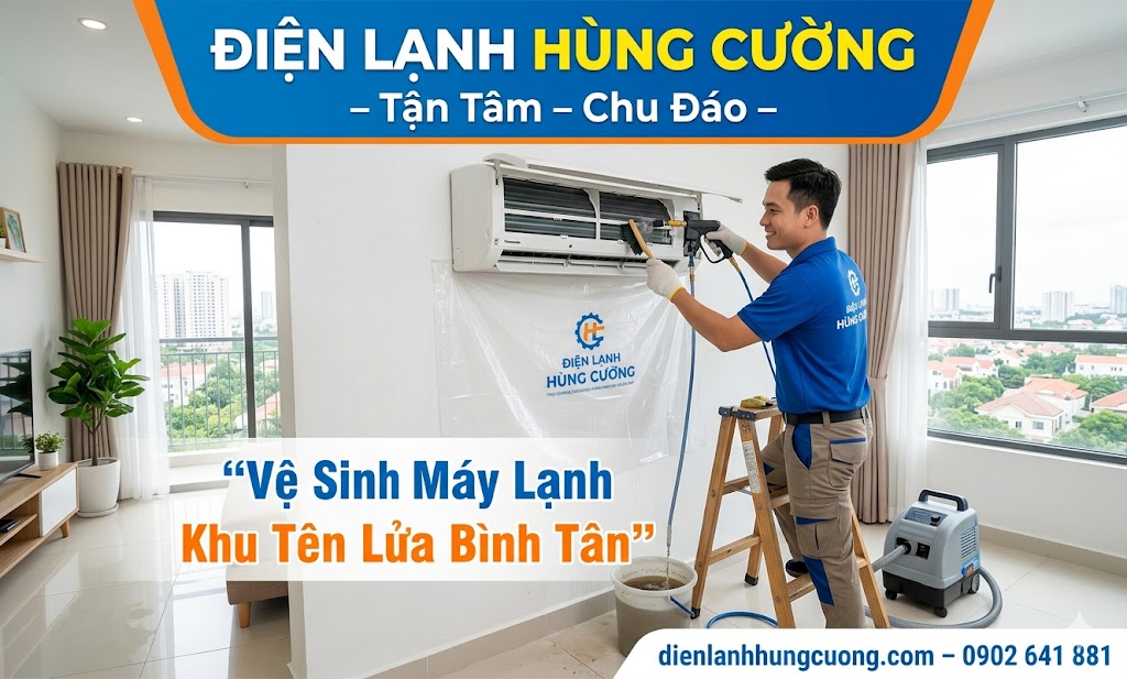 Bạn đang sinh sống tại "Tiểu Hồng Kông" của quận Bình Tân và chiếc máy lạnh nhà bạn đang có dấu hiệu "đình công" giữa cái nắng gay gắt? Việc tìm kiếm một dịch vụ vệ sinh máy lạnh khu Tên Lửa Bình Tân uy tín, giá cả minh bạch không chỉ giúp không gian sống mát mẻ mà còn bảo vệ sức khỏe cho cả gia đình. Hãy cùng Điện lạnh Hùng Cường tìm hiểu giải pháp bảo trì máy lạnh chuẩn chuyên gia ngay sau đây.